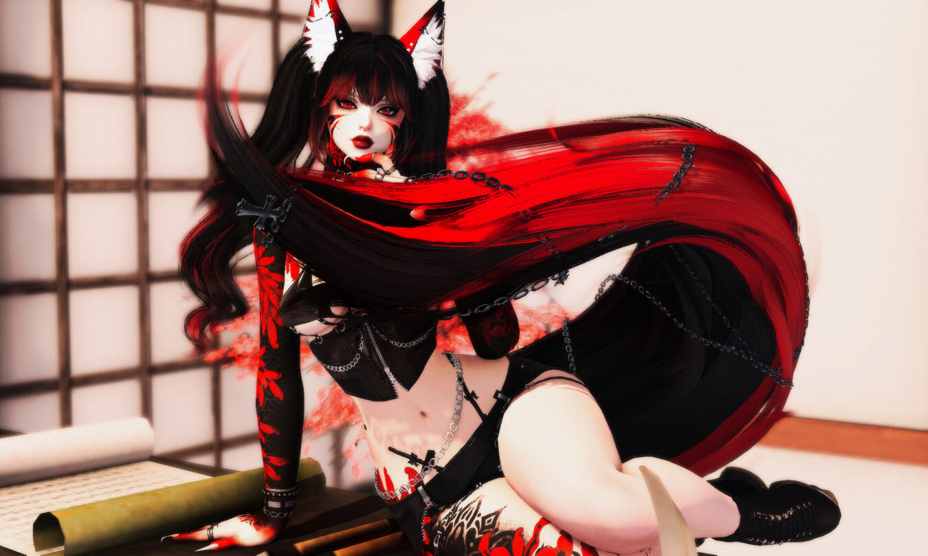 She walked into the Village with barely a slip of fabric intact. There were bruises all over her pale skin and her long white hair was knotted and frayed. The strange thing was she had fox ears and a tail! At first, we thought her playing a prank, wearing a costume, but Grandmother recognized her. Called her the descendant of Tamamo-no-Mae. Tamamo Gozen as they called her in Kugane. Auspice is what Grandmother called her. A lesser form of a Kami. A goddess drenched in Moonlight. Grandmother named her Tsukiko-no-Yume (Moonlight Dreamer) it was such a fitting name. She looked like she was made of light, her eyes were bright pink prisms that spun when she looked towards someone directly. So many good things happened while she was here. The fish became more plentiful, the crops grew in soil not fertile enough, and families without children due to disease were blessed with fertility. We grew and grew under her watchful gaze. We built her a garden Shrine where she lived with her lover, another Auspice, a Fox like her named Nobuyuki. Together they taught faith, wisdom, and hope. This lasted for one hundred years! It was a time of great goodness and then tragedy came. Two children wandered into the woods and became lost, Tsukiko-no-Yume hunted for days and nights to bring them home. They were found crushed by a Tsurube otoshi. The people blame her, cursed her, and destroyed her Shrine. They murdered her Nobuyuki as payment for failing them and then she lost control. As the fires raged in the garden, her anguish drove her mad. Some escaped and lived to tell the tale, but most became part of the bloody water some say still cuts through ruins the ruins of the Shrine today. -Haoyu descendant of Ling Mae